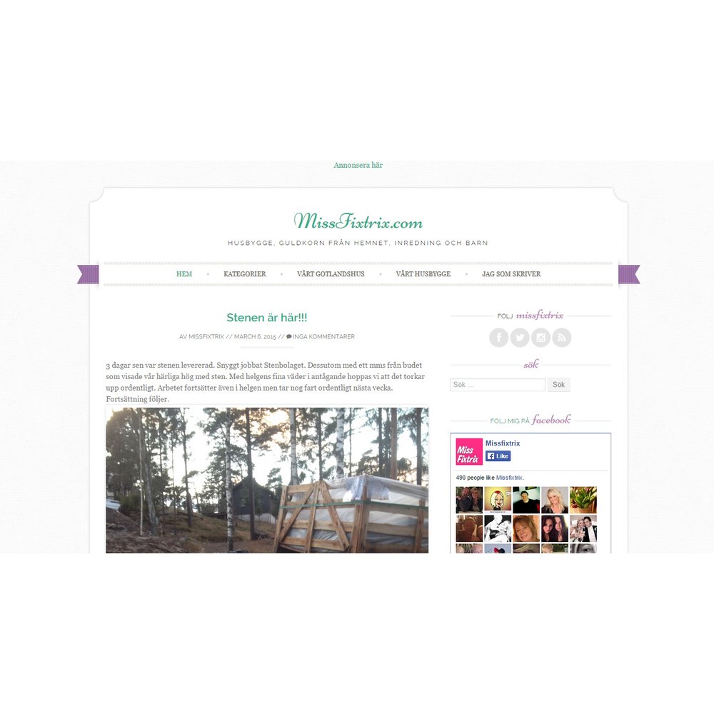 I bloggen Missfixtrix får vi följa Johanna som skriver om allt ifrån inredning till husbygge, det vi fastnade mest för i Johannas blogg är hennes bredd och förståelse för vad som passar ihop designmässigt. Bloggen handlar dels om processen att bygga familjens sommarhus på Gotland samt arbetet med familjens nybyggda hus utanför Stockholm.