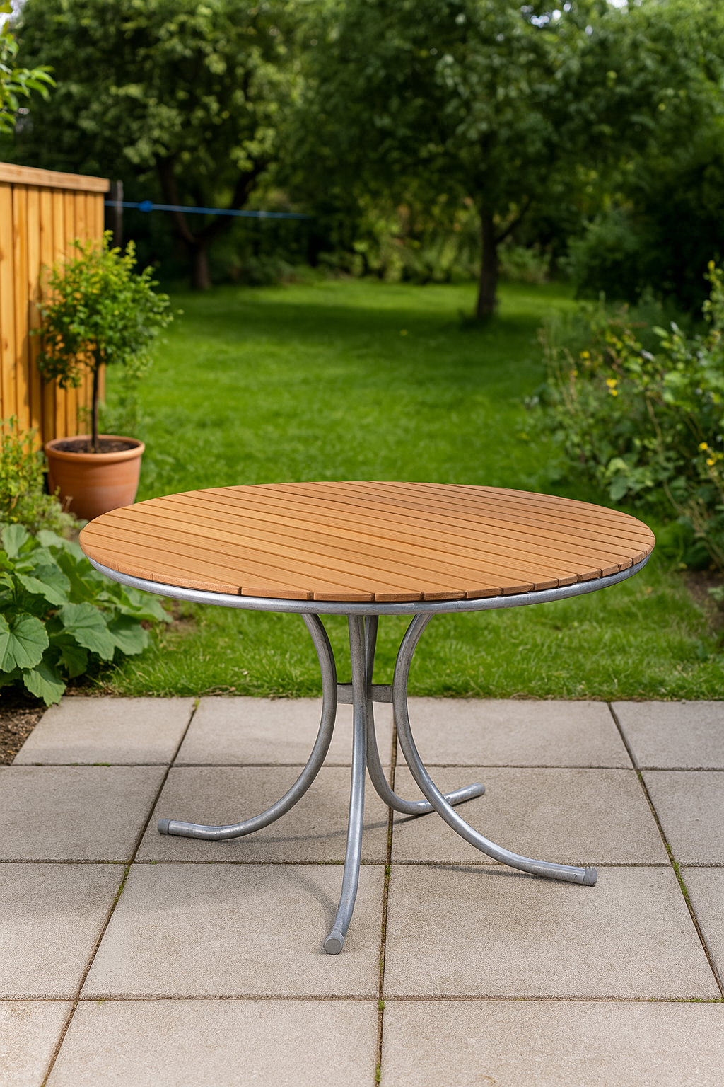 Utegruppen består av ett runt matbord Ø110 cm med 4 st tillhörande stolar.