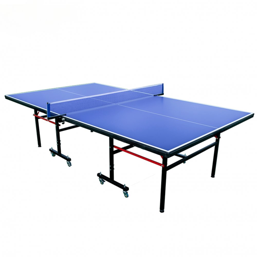 Pingisbord med 2 vikbara sidor och hjul för enkel transport.