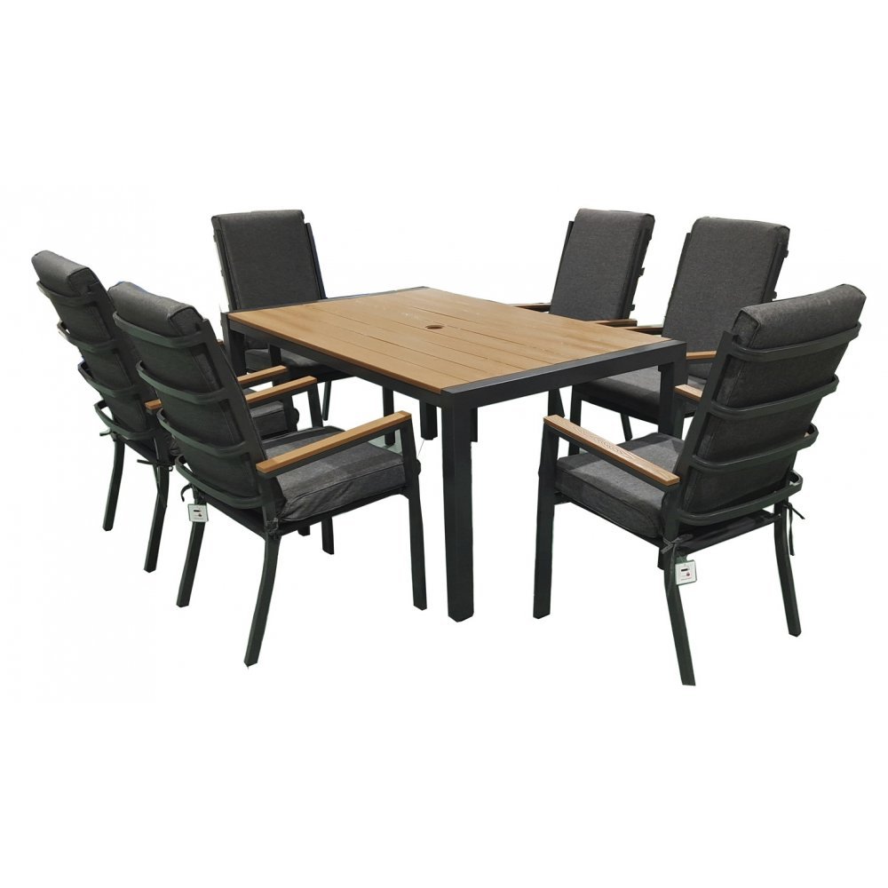 Utemöbler matgrupp 6 stolar gråbrun 160 cm aluminium polywood: